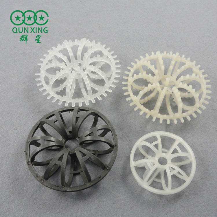 這種形如橢球的填料由許多圓環(huán)繞結(jié)而成,塑料花環(huán)填料又稱泰勒花環(huán)填料,是由12個小圓環(huán)按徑向排列而組成的一個大扁球體。由于填料的空隙處能有較高的持液量,可使塔內(nèi)液體的停留時間較長,從而增加了氣液兩相的接觸時間,提高了填料的傳質(zhì)效率。花環(huán)是由12個小圓環(huán)按徑向排列而組成的一個大扁球體,很類似于一個螺旋形彈簧首尾相接繞成的一個圓球體。有的小圓呈A字;有的在小圓和大圓邊沿還帶有齒;有的外圍沒有大圓圈,只是有里面的小圓組成,客戶可根據(jù)各自的要求訂購不同種類的花環(huán)。