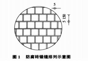 3)基層表面的處理方法:鑒于本工程防腐基層為混凝土結構層表面較為平整通過單體滿水試驗可知池體局部有滲水現(xiàn)象。據(jù)此在塊材防腐施工前應先在池體內(nèi)側(cè)沿滲水裂縫剔除一條寬約300mm深約20mm的凹槽然后采用氯丁膠乳水泥砂漿內(nèi)摻12%的HEA分兩次進行修補抹壓(在氯丁膠乳水泥砂漿修補前應先涂刷一層氯丁膠乳水泥凈漿)養(yǎng)護3d~7d后再與主體基層一道運用鋼絲刷進行表面整體打磨除基層表面的灰塵和混凝土析出物(如水泥浮漿等)以使基層表面形成均勻粗糙面最后用水提前24h沖洗干凈。